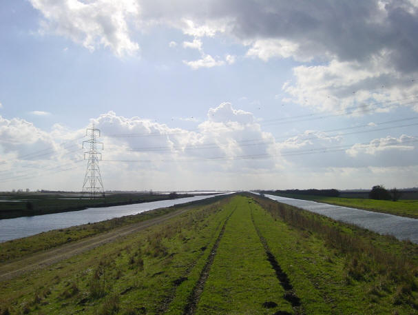Looking south from the pylons with the Delph on the left and Old Bedford on the right.